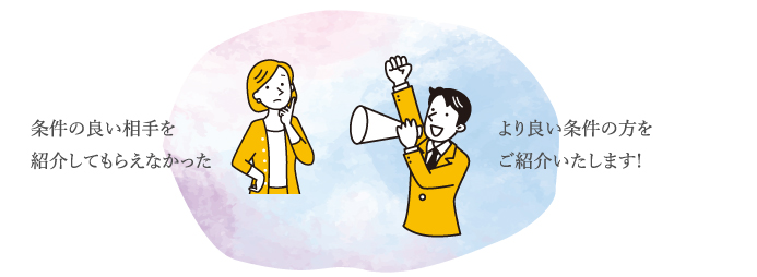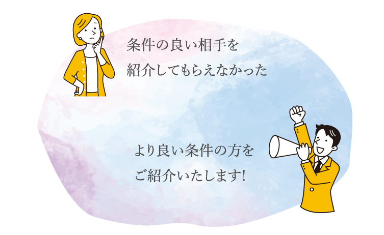 私たちマリッジシークエルは、 希望の条件に合うお相手との成婚を全力で応援します。 妥協なんてさせません!